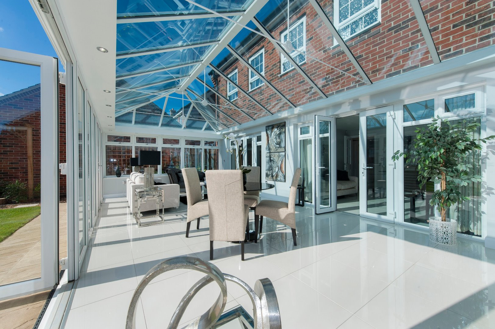 With its clean lines and timeless appearance our modern conservatories are very popular choice today. With our authentic colour finishes, our fabulous range of colours and designs will fully complement and truly enhance your modern conservatory. You can also choose to have glazing bars in the roof which over sail and carry the glass with it, to form a veranda where homeowners can sit in the garden and be protected from the worst of the elements. Our modern conservatories are unlike anything else around thanks to its predominantly glass-built composition. On a warm day – a custom-made modern conservatory which uses large patio doors or bi-folding doors allows you to enjoy a much bigger space, perfect for family barbeques or children’s parties!